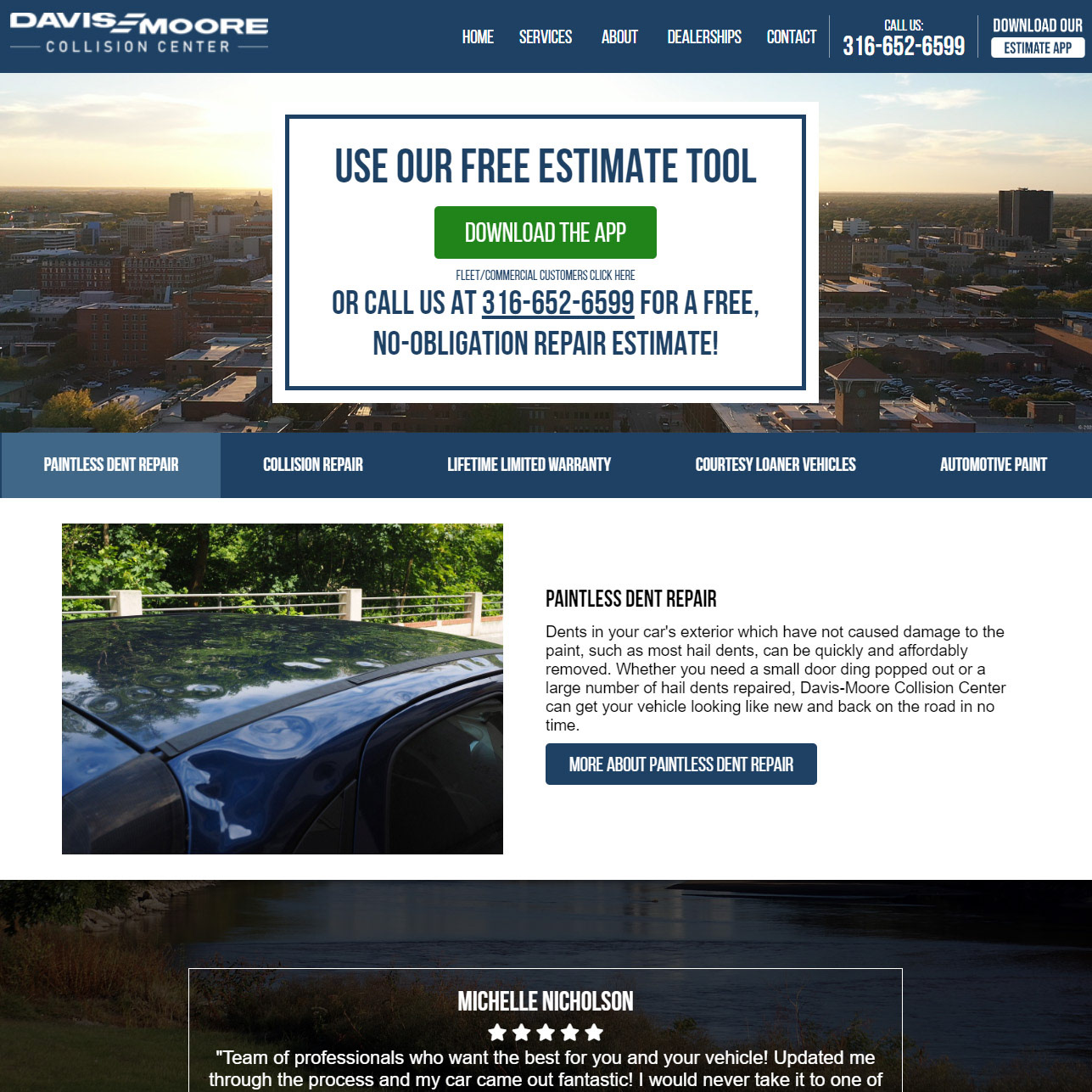 A website designed for the Davis-Moore Collision Center in Wichita, KS. This site was designed to be similar in style to the other Davis-Moore dealership websites.
